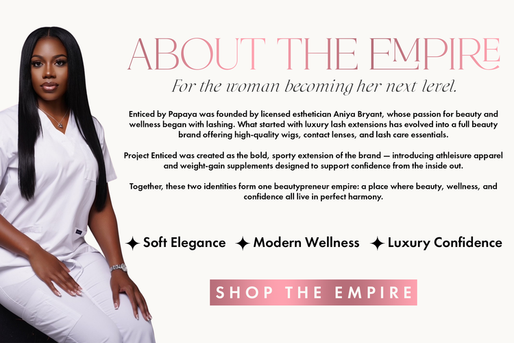 BECOMING HER IS A LIFESTYLE • BEAUTY. WELLNESS. CONFIDENCE. • BUILT ENTICED